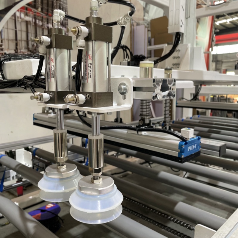 4. Εκφόρτωση εκφόρτωσης: Μόλις παραδοθεί ο πίνακας στην καθορισμένη θέση του εξοπλισμού επεξεργασίας, τα κύπελλα αναρρόφησης απελευθερώνουν το κενό για να ολοκληρώσουν τη διαδικασία φόρτωσης. Συγχρόνως,